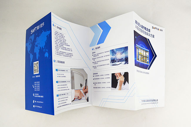 规格:定制规格 尺寸:可定制 单双面:双面 颜色:黑白、彩色 纸质:双铜纸、双胶纸 款式:对折页、三折页、四折页、多折页 折页方式:对折、滚折、风琴折、荷包折、关门折、十字折等 工艺:封面覆膜、UV、压线、折成品 样品:提供打样