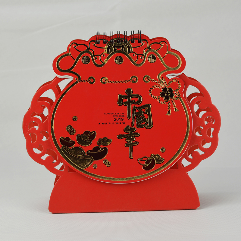 中国红异形台历